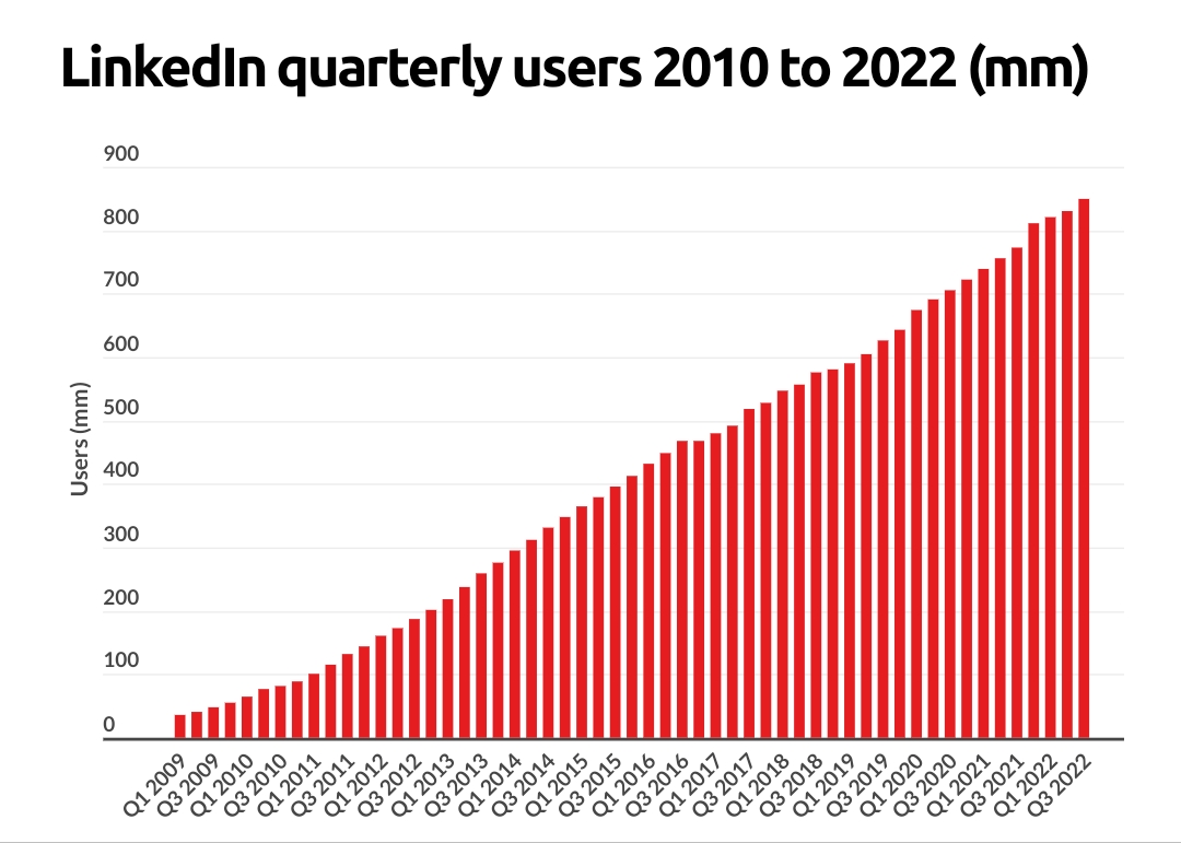Revenue: LinkedIn generates revenue through a combination of advertising, premium subscriptions, and the sale of its recruiting tools to businesses. In the fiscal year 2022, Annual LinkedIn’s revenue amounted to more than 13.8 billion U.S. dollars, up from 8 billion U.S. years during the 2020 fiscal period.