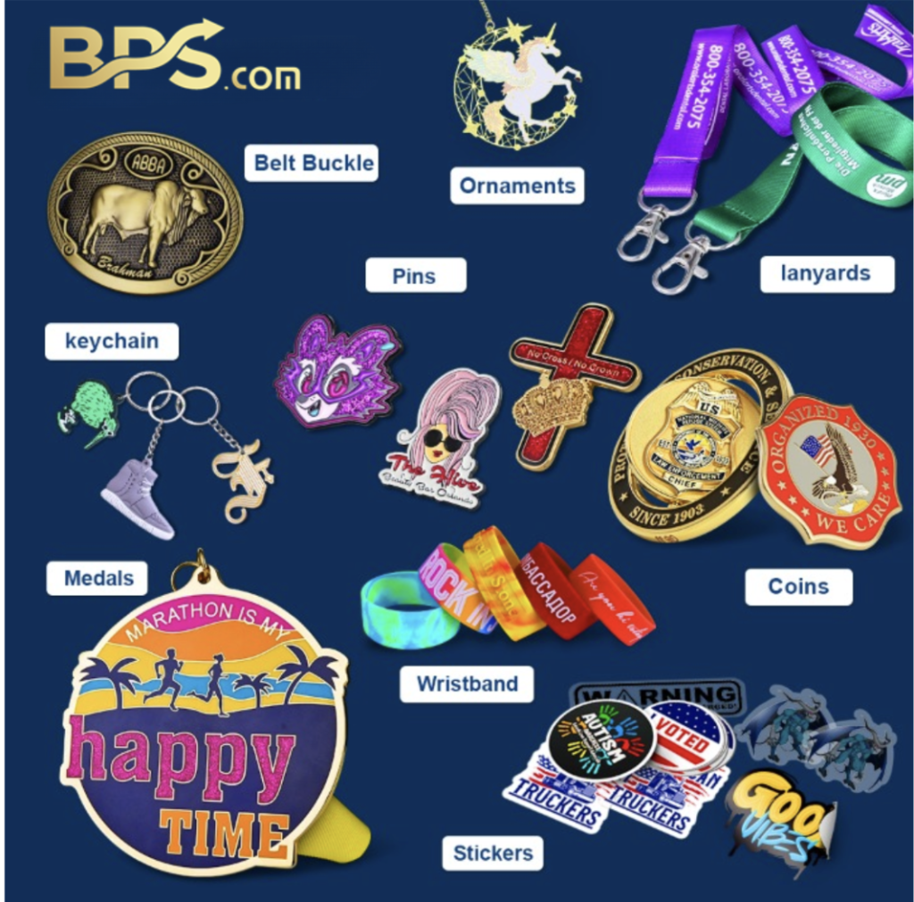 You can find these products on BPS.com.Besides, there are other exquisite products include Custom Pens, Coins, Medals, Lanyards, Lapel pins, Keychains, belt buckles, stickers, and more.