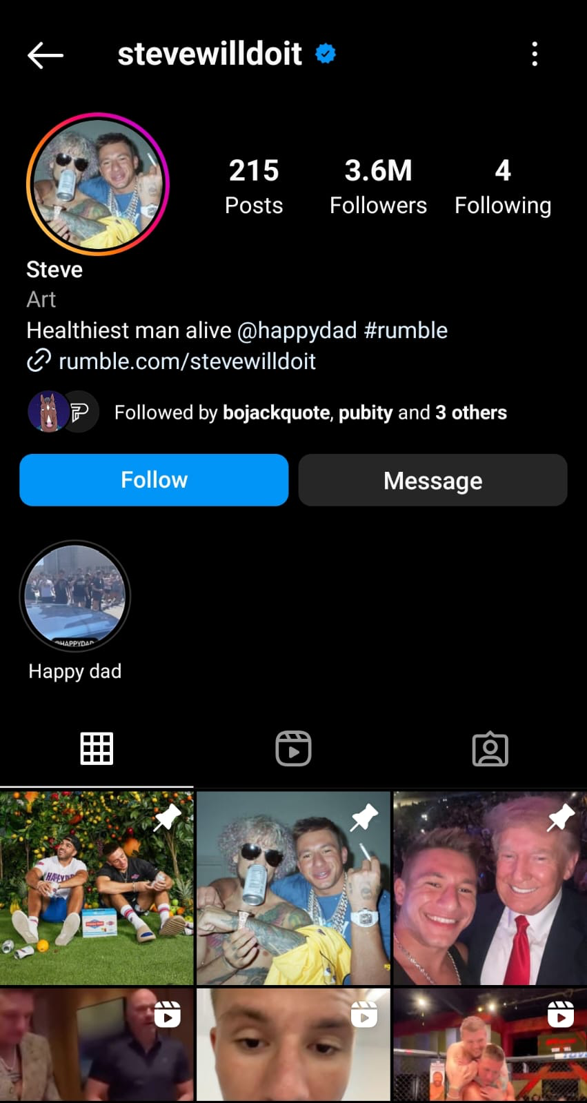 As of now, Steve’s YouTube channel is deleted but he has started posting content on this social media platform called Rumble and enjoys a high following and engagement on Instagram.